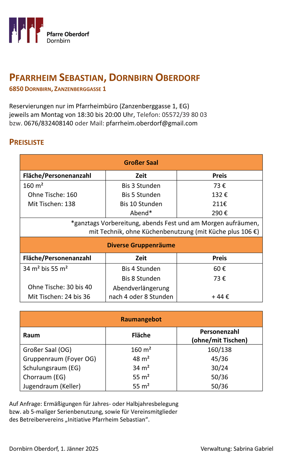 Reservierungs- und sonstige Anfragen an: pfarrheim.oberdorf@gmail.com