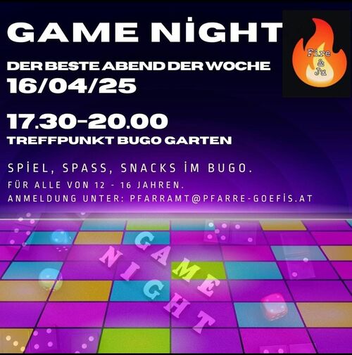 Fire & Ju Game Night - Spiel, Spaß & Snacks! Hast du Lust auf eine tolle Gruppenstunde mit jeder Menge Spaß und Spielen? Dann sei dabei! Mehr lesen