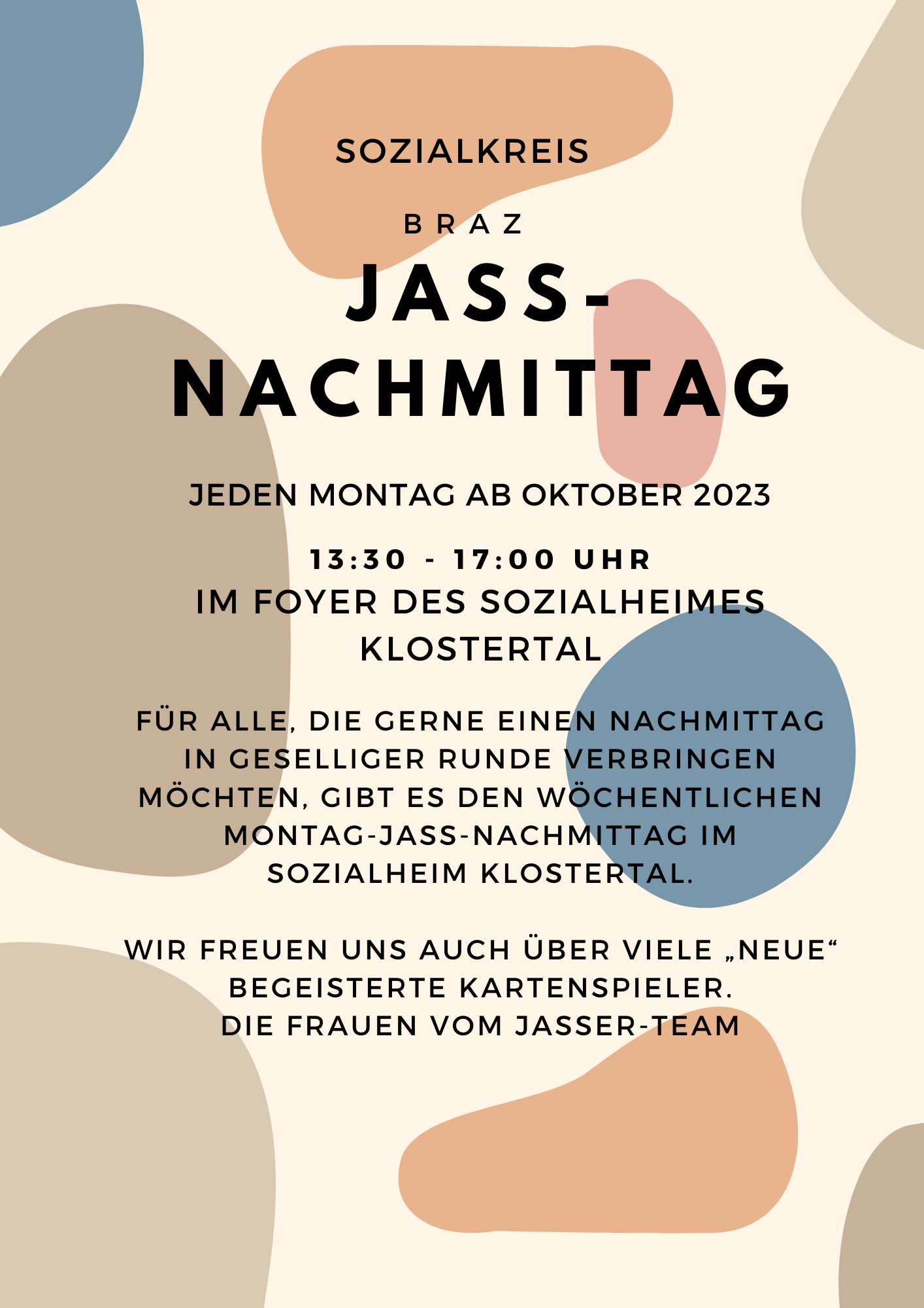 Auch dieses Jahr, ab Oktober 2023, findet wieder jeden Montag der Jassnachmittag unseres Sozialkreises statt.
