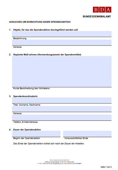 Vorlage Ansuchen Spendenaktion Bundesdenkmalamt